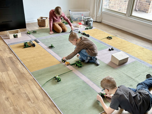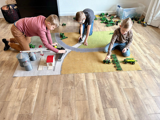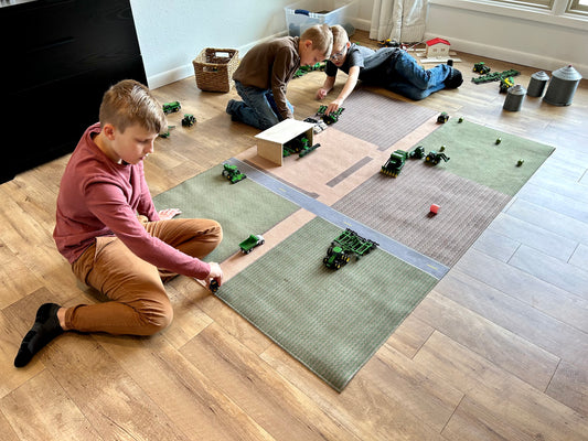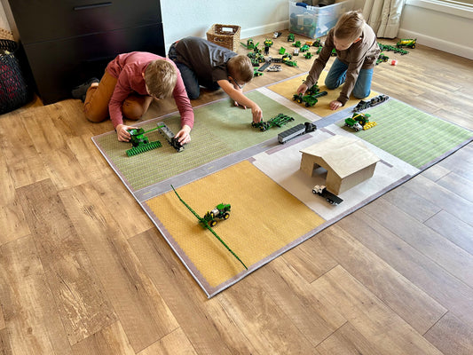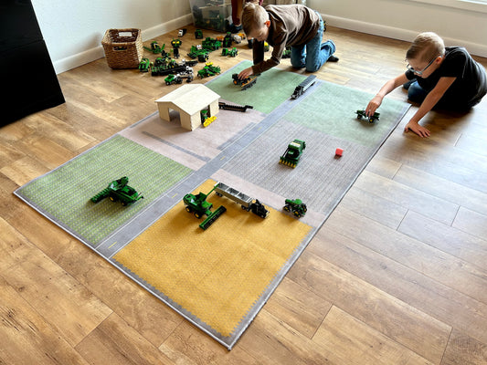 Farm RugsMade for small farm toys (1/64 scale). Our rugs help you teach your kids about tillage, seeding, fertilizing, and harvesting on the farm. After learning what each machine does, children stay busy for hours, learning while they play.