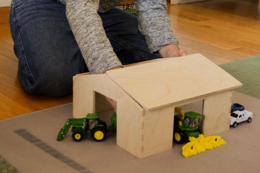 Farm ShopsWe love the look of our simple wooden Farm Shops. If you would like to add character to your farm and give your kid a fun creative project, paint it! We painted ours to match our favorite college football team colors.